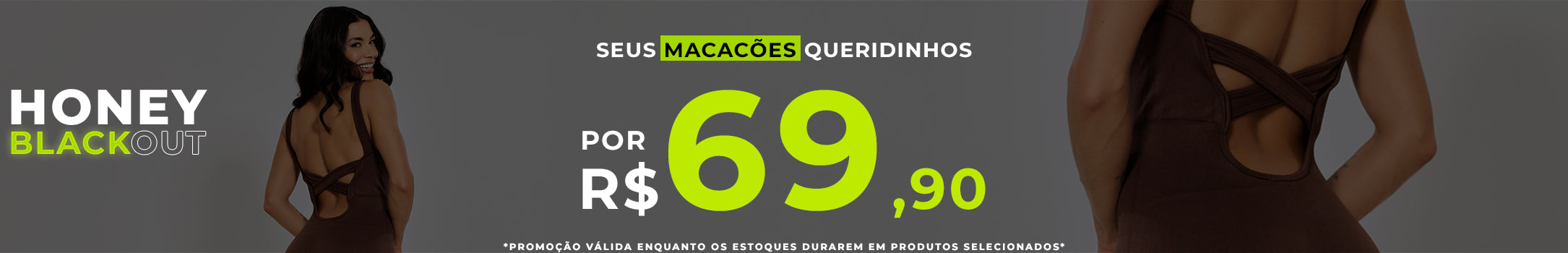 Macaquinho Fitness Preto Decote Nas Costas Honey Club MC322