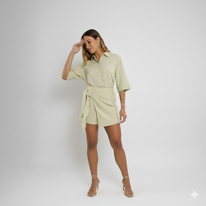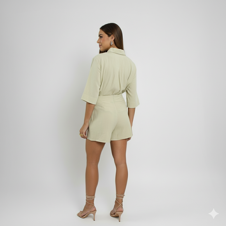 A Bermuda de Alfaiataria Leve Honey Be combina perfeitamente com camisas amplas, tops estruturados ou blusas de seda, criando visuais equilibrados e cheios de estilo. Seja para um almoço à beira-mar ou um look sofisticado para a noite, essa peça é um verdadeiro curinga do guarda-roupa feminino.