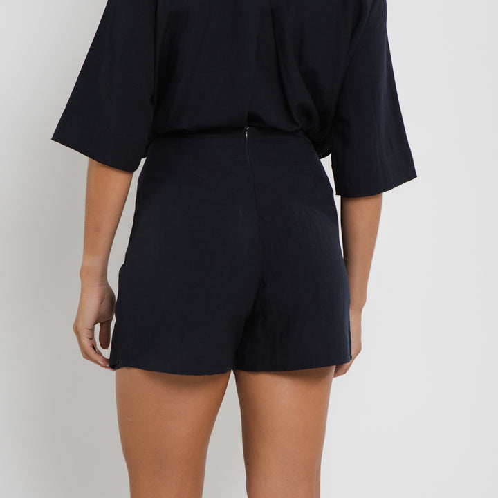 Com modelagem ampla e soltinha no corpo, essa bermuda traz um diferencial incrível: um detalhe cruzado na parte frontal, que cria o efeito visual de uma saia envolvente, unindo o charme da alfaiataria com a praticidade de uma bermuda. O resultado é uma peça moderna, estilosa e extremamente versátil, perfeita para compor looks que vão do casual ao elegante.