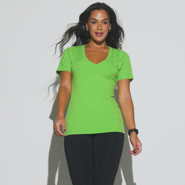 Blusa Fitness Canelada Gola V Verde BL481 Adicionar à Lista de Desejos