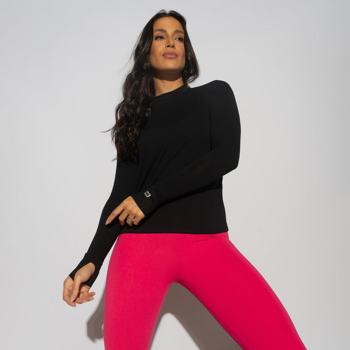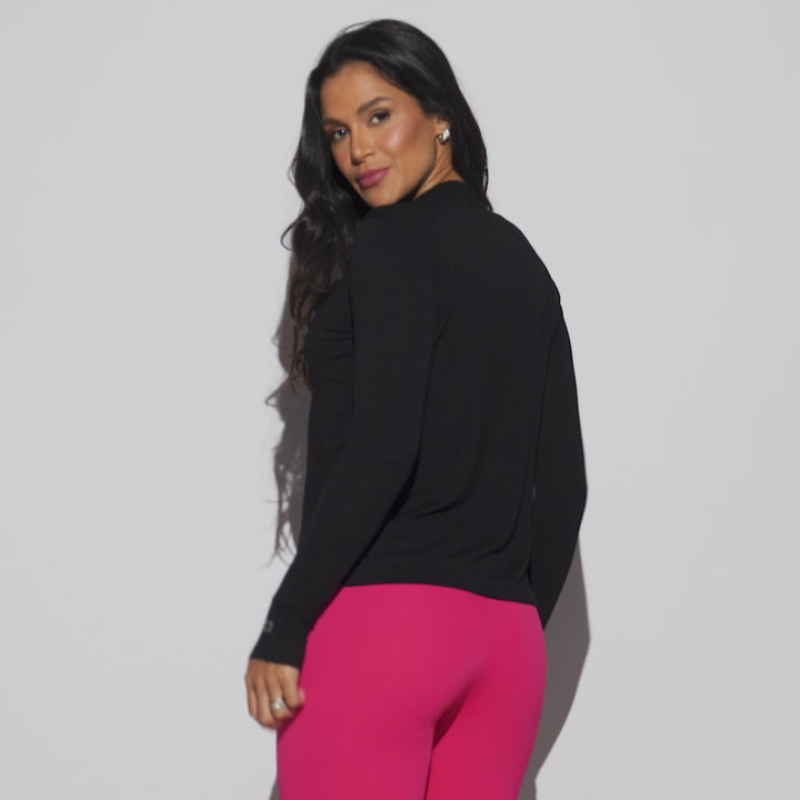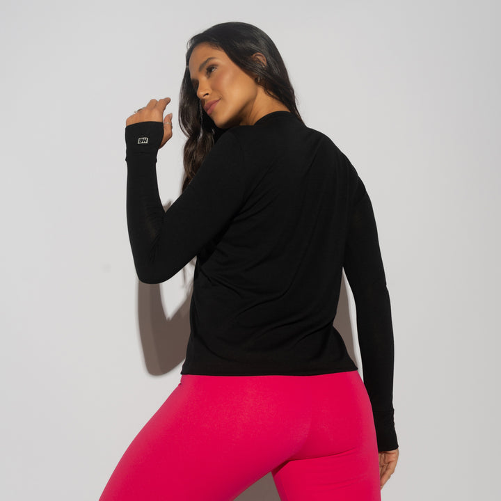 <strong>Blusa Fitness Preto Com Manga Longa HNB</strong>