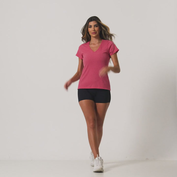 Sinta-se envolvida nesta peça única: a Blusa Fitness Rosa Canelada Honey Club é mais do que uma simples blusa, é um abraço de confiança e estilo. Com gola em V e mangas curtas, proporciona uma sensação de liberdade enquanto você se movimenta com graça e determinação. Seu acabamento em bainha nas mangas e na barra garante um ajuste perfeito ao corpo, acompanhando cada movimento com leveza e elegância.