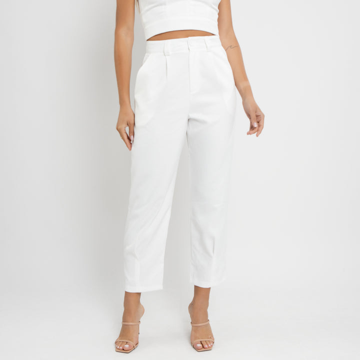 Com modelagem levemente afunilada nas pernas, essa calça valoriza a silhueta e traz um toque contemporâneo ao visual. O detalhe de pregas próximo à bainha é o grande diferencial da peça — um design sofisticado e original que adiciona charme e personalidade à composição.