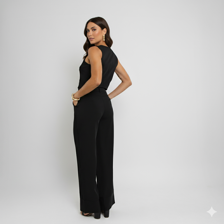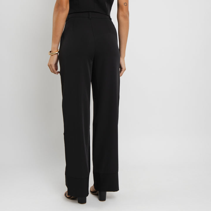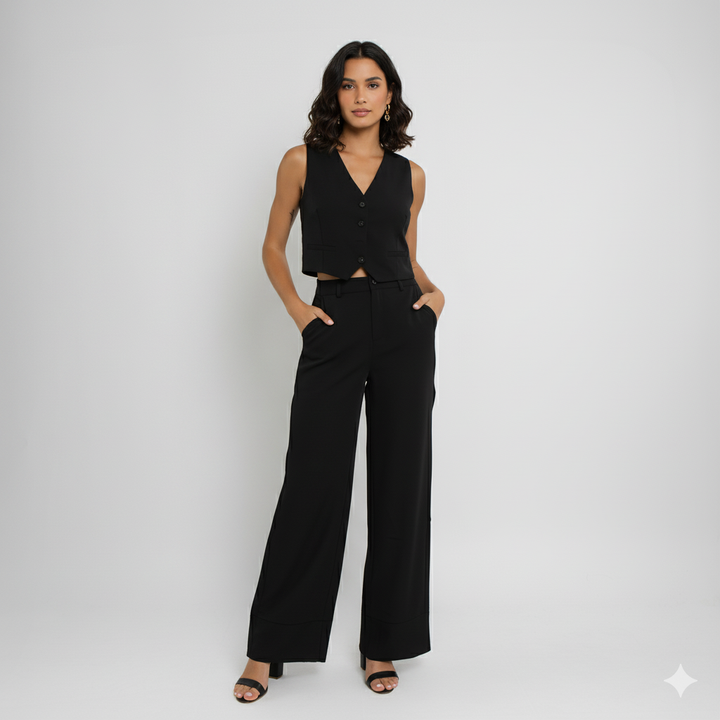 Com modelagem pantalona e pernas levemente afuniladas na barra, a calça cria um visual equilibrado e elegante, valorizando a silhueta com naturalidade. A cintura com elástico embutido garante ajuste perfeito ao corpo, enquanto os bolsos discretos e acabamento minimalista reforçam o ar refinado da peça.