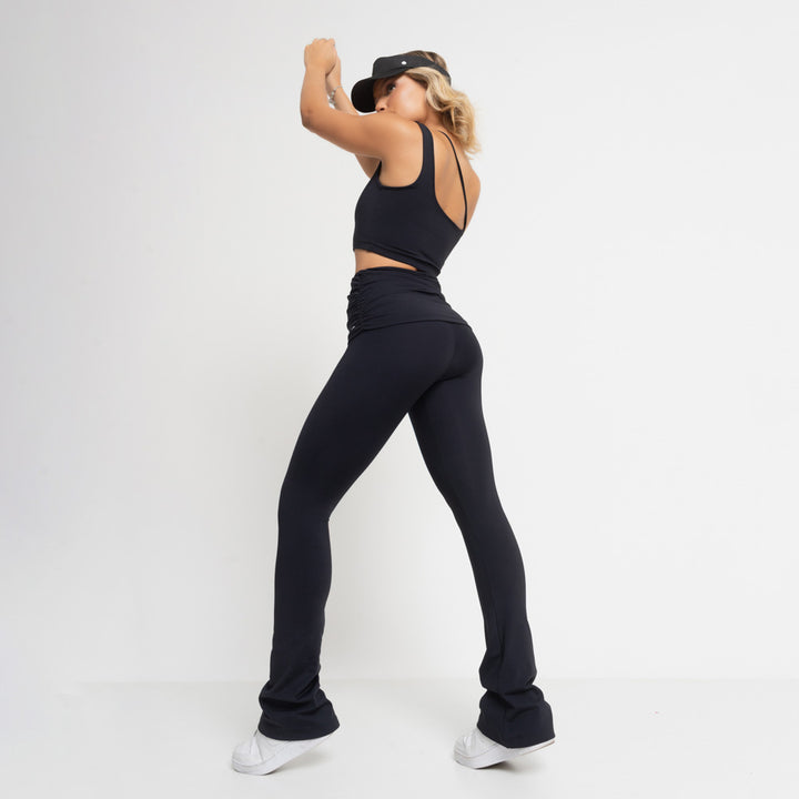 A Legging Flare da coleção Honey Club, uma peça que harmoniza estilo, conforto e versatilidade, projetada para mulheres dinâmicas e modernas.