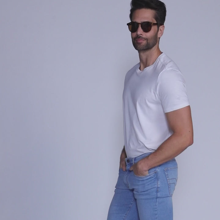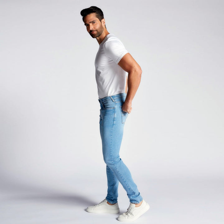 Com corte skinny mais ajustado ao corpo, esta calça jeans masculina premium possui cintura média com corte anatômico nas costas e leve curvatura para melhor ajuste à cintura. O tecido com elastano oferece leve elasticidade, proporcionando liberdade de movimentos, toque macio e encorpado. Possui a frase “Vá cuidar da sua vida” estampada na parte interna da cintura.