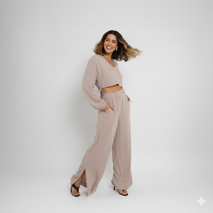 Vista-se com atitude, conforto e leveza. Sinta o poder da Calça Wide Leg Honey Be — onde cada detalhe foi pensado para realçar o melhor de você.