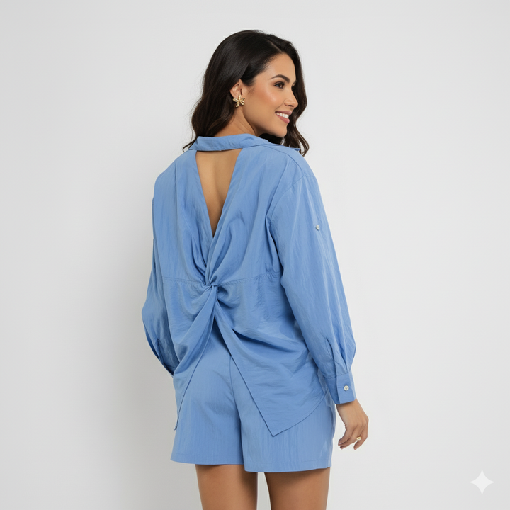 Camisa Feminina em Lioncel – Alfaiataria Leve com Recorte nas Costas e Caimento Sofisticado