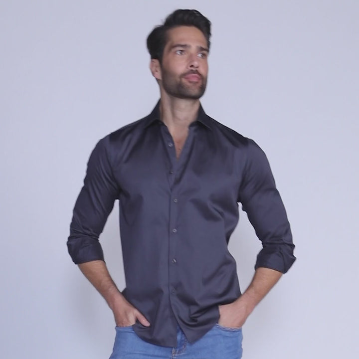 Camisa Social Slim Fit Masculina com Elastano Chumbo 1733/4