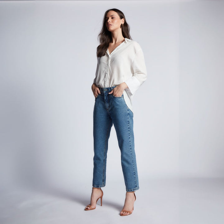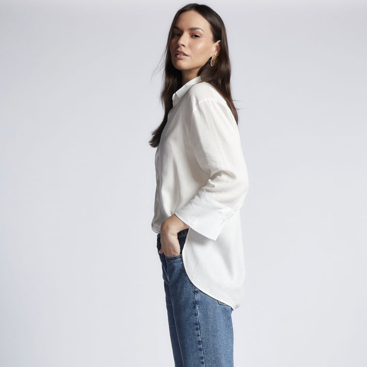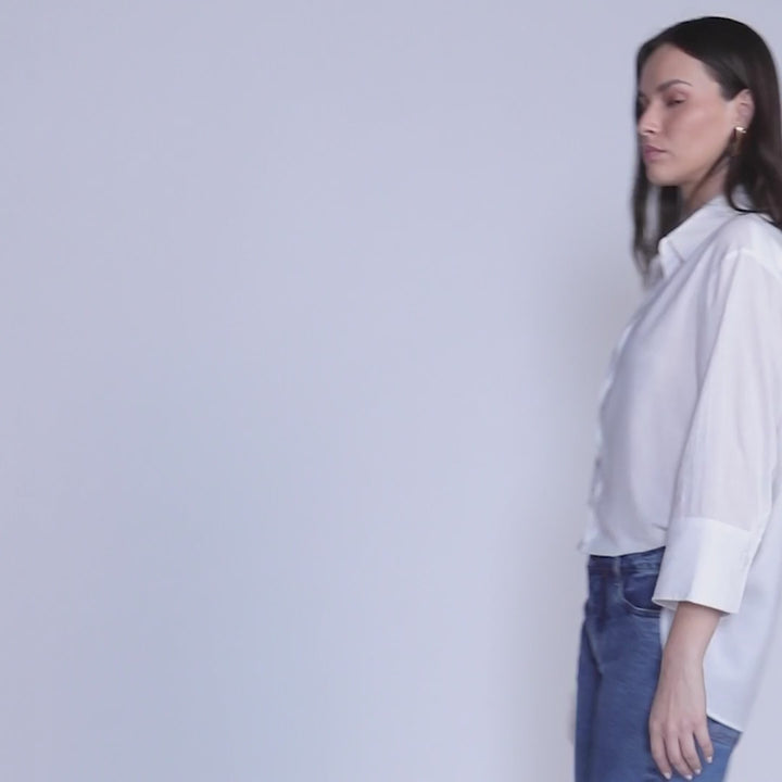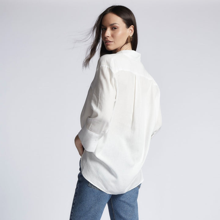 Camisa Social Viscolinho Feminina Overzised Branco 1735/1