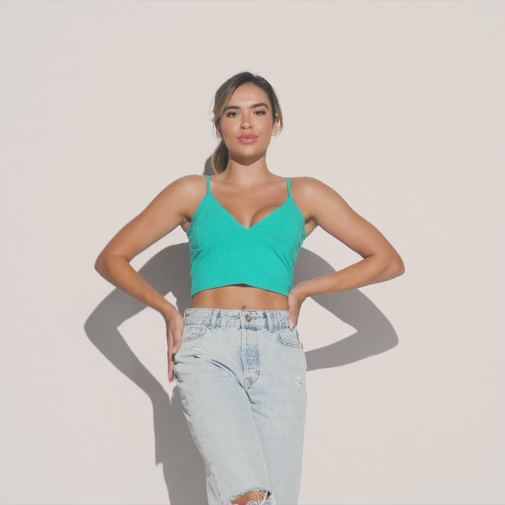 Cropped Fitness Canelado Verde Decote V CR120 Adicionar à Lista de Desejos