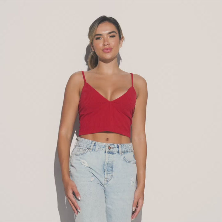 Cropped Fitness Canelado Vermelho Decote V CR119 Adicionar à Lista de Desejos