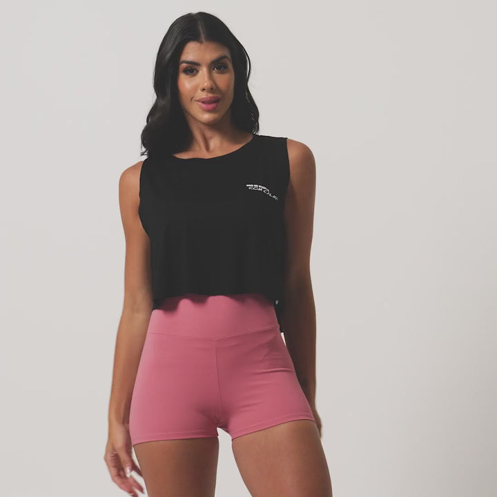 Este cropped, sem mangas, foi projetado para ser a sua companheira em todas as aventuras, seja na academia, no crossfit, ou em uma corrida ao ar livre. Seu design minimalista em preto serve como tela para a frase estampada, inspirando-a a superar desafios e alcançar novas alturas.
