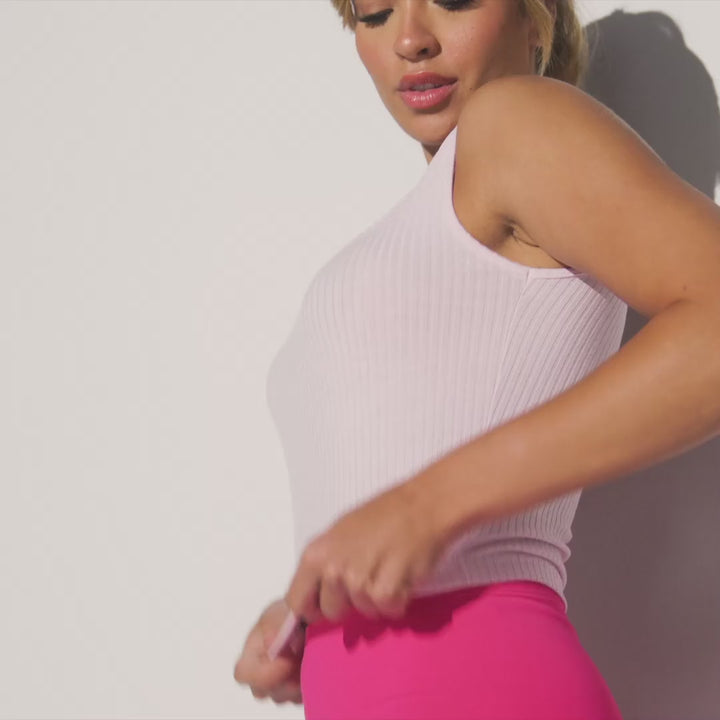 O Cropped Regata Fitness Canelado Rosa possui toque macio devido a sua composição garantindo conforto para ir à academia ou treinar ao ar livre.
