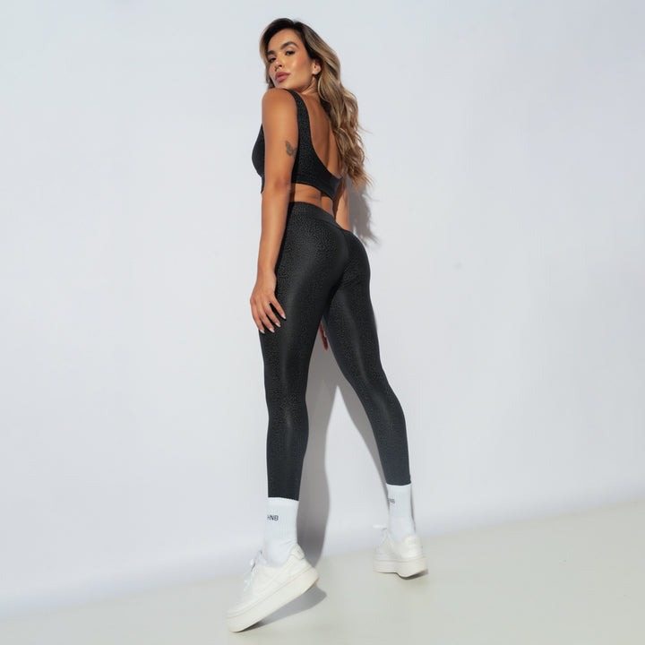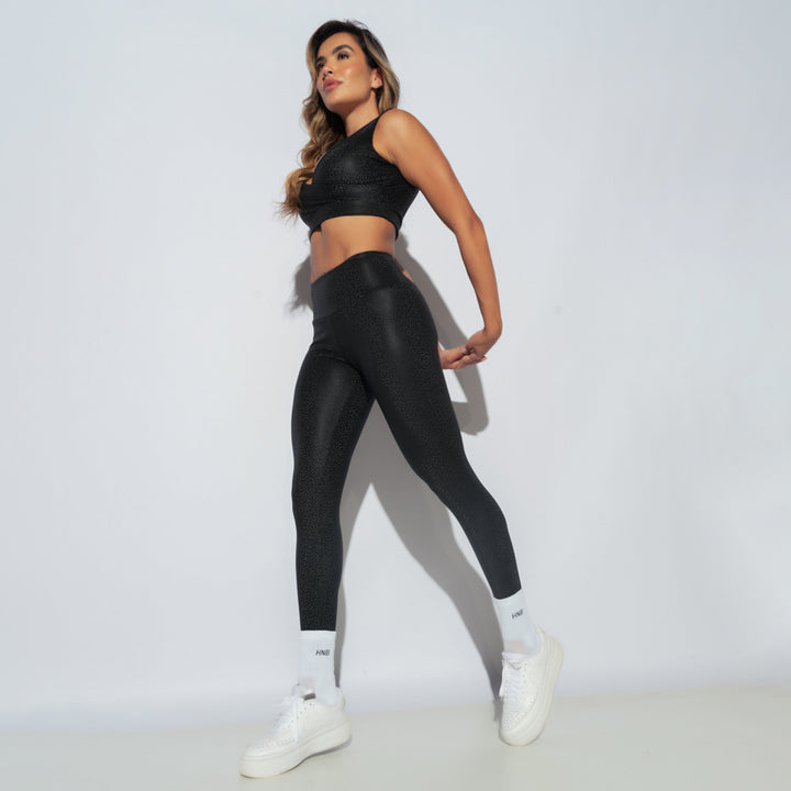 O tecido possui uma estampa de efeito 3D, adicionando um toque moderno ao seu look fitness. Com um cós alto e duplo, essa legging oferece suporte extra e ajuda a modelar sua silhueta.