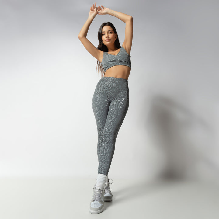 Fabricada em tecido emborrachado de alta qualidade, a Legging apresenta uma linda textura de onça que a torna única e estilosa. Além disso, o tecido é altamente elástico, oferecendo total liberdade de movimento, e possui alta compressão para modelar a silhueta, realçando suas curvas.