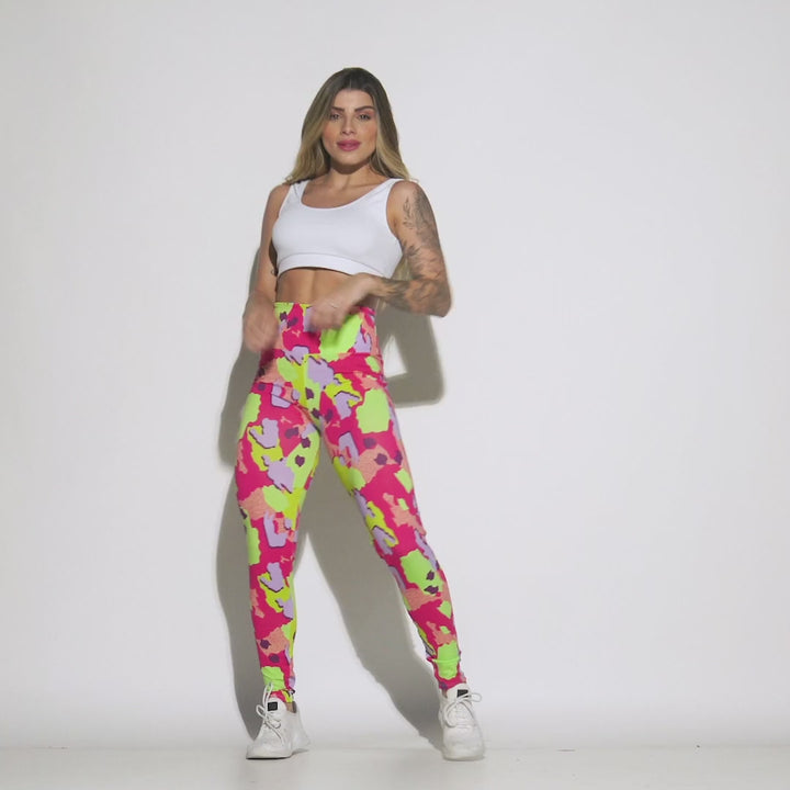 Calça Legging Fitness Estampada Camuflado Candy Color