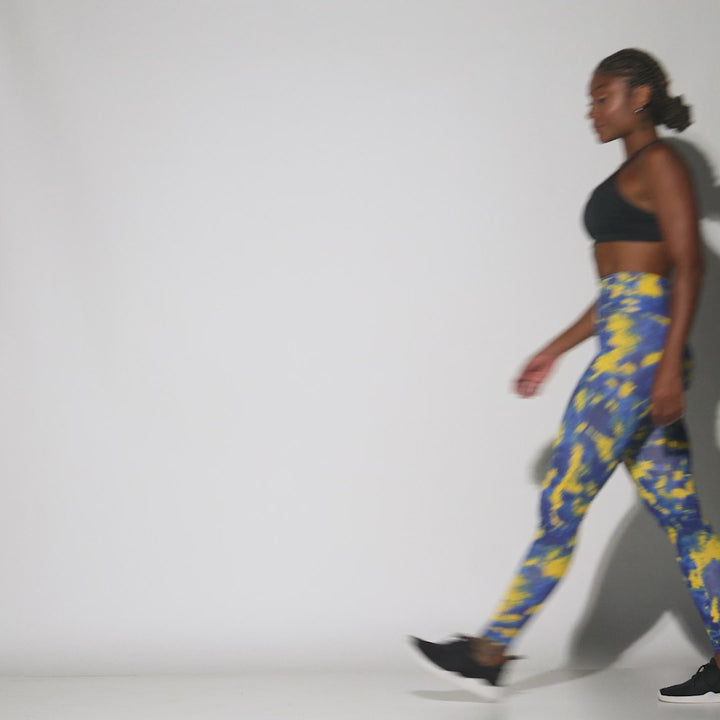 Calça Legging Fitness Estampada Tie Dye Amarelo e Azul