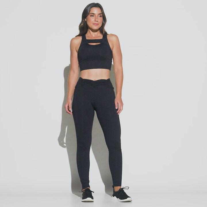 Legging Fitness Preta com Cós Franzido LG2134 Adicionar à Lista de Desejos