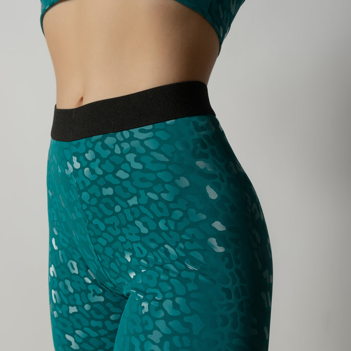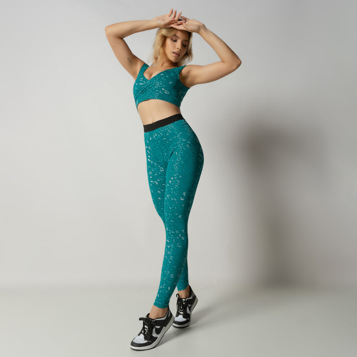 A textura de onça confere um design exclusivo e moderno a essa legging, elevando o seu visual fitness. Além disso, a modelagem ajustável se adapta perfeitamente às curvas do seu corpo, realçando a silhueta de forma favorável.