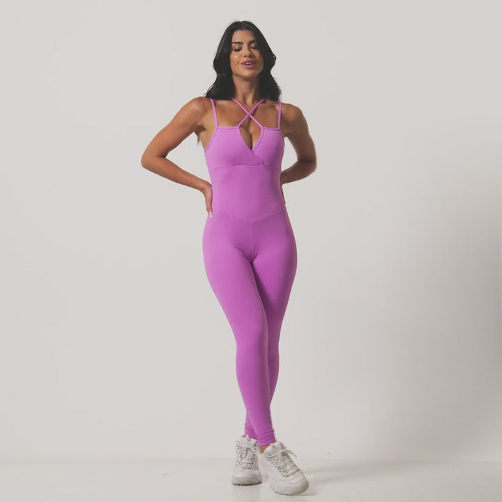 Com poliamida de alta compressão e proteção UV50+, o Macacão Fitness Lilás Transpassado Honey Club é mais do que uma peça de roupa, é seu novo aliado de treino, oferecendo conforto, suporte e estilo incomparáveis.