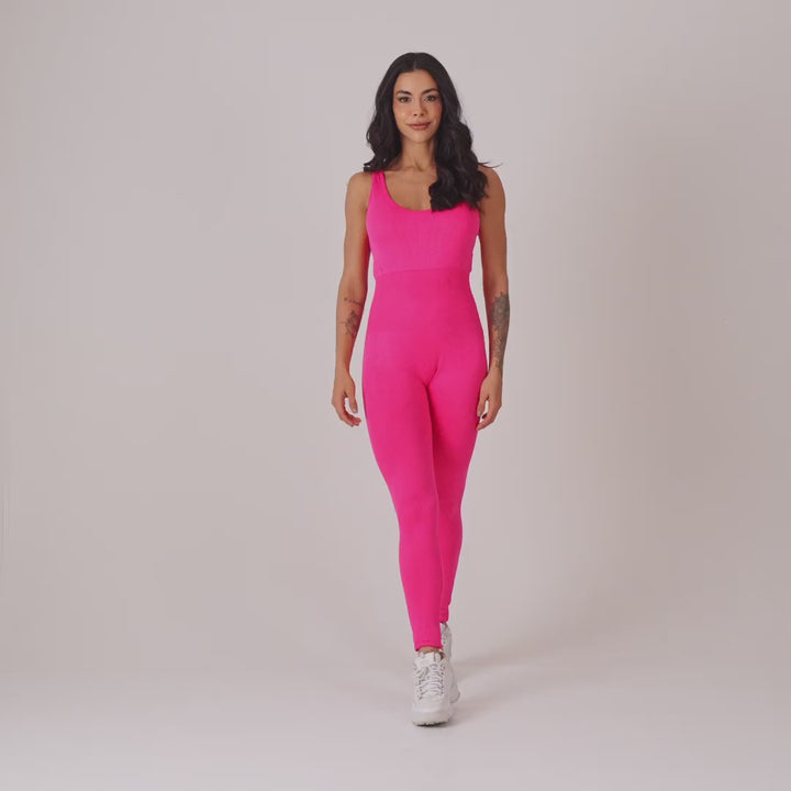 Modelagem firme, toque macio e design que valoriza cada movimento. - Tecnologia seamless: estrutura sem costura - Trama encorpada com zero transparência - Zona de compressão na cintura para modelar com conforto - Bojos embutidos de espuma macia, removíveis e reposicionáveis - Alças largas para mais sustentação durante o treino - Detalhe cruzado nas costas que garante firmeza e visual moderno - Tecido com toque delicado e ultra macio - Modelo: Veste tamanho P - Composição: 90% Poliamida – 10% Elastano O Macacão Sem Costura Costas Cruzadas Pink é aquele tipo de peça que une tecnologia, estilo e, claro, funcionalidade — tudo pensado pra acompanhar o ritmo de quem treina com intensidade e não abre mão de se sentir linda e confiante. Com tecnologia seamless, ele não tem costuras laterais, o que garante um ajuste perfeito ao corpo e muito mais conforto durante o uso. A trama encorpada oferece sustentação firme e segura, sem qualquer transparência, mesmo nos exercícios mais intensos. Além disso, a área da cintura conta com compressão estratégica, que modela a silhueta e proporciona firmeza na região abdominal. Ou seja, é ideal para quem busca definição sem abrir mão da liberdade nos movimentos. Os bojos embutidos, feitos de espuma ultra macia, podem ser removidos conforme a sua preferência, garantindo conforto em qualquer situação. Enquanto isso, as alças largas oferecem suporte extra para o busto, entregando sustentação firme e estabilidade. Para completar, o detalhe cruzado nas costas confere ainda mais charme ao visual, sem comprometer a performance. A cor pink vibrante traz energia e atitude ao look fitness — sendo assim, perfeita para destacar seu estilo nos treinos ou até mesmo em composições casuais. Dessa forma, combine com jaquetas, coletes ou tênis statement, e esteja pronta pra brilhar da academia à rotina urbana com confiança e autenticidade.