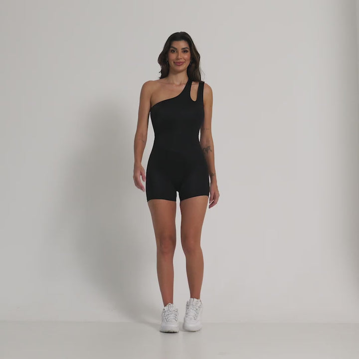 Além disso, sua modelagem anatômica foi cuidadosamente elaborada para valorizar suas curvas e proporcionar o máximo conforto durante os exercícios. Com alças duplas e um decote assimétrico que realça o busto, este macaquinho é a combinação perfeita entre estilo e funcionalidade.