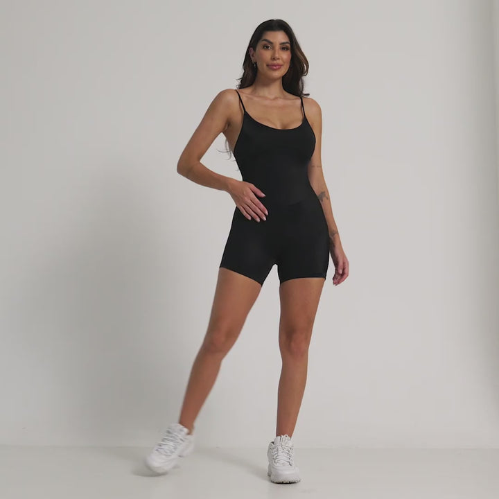 E o melhor de tudo? O Macaquinho Fitness Energy Preto Costas em V é tão confortável quanto elegante, graças ao seu short integrado que oferece liberdade de movimento e frescor durante todo o treino. Então, está pronta para brilhar?