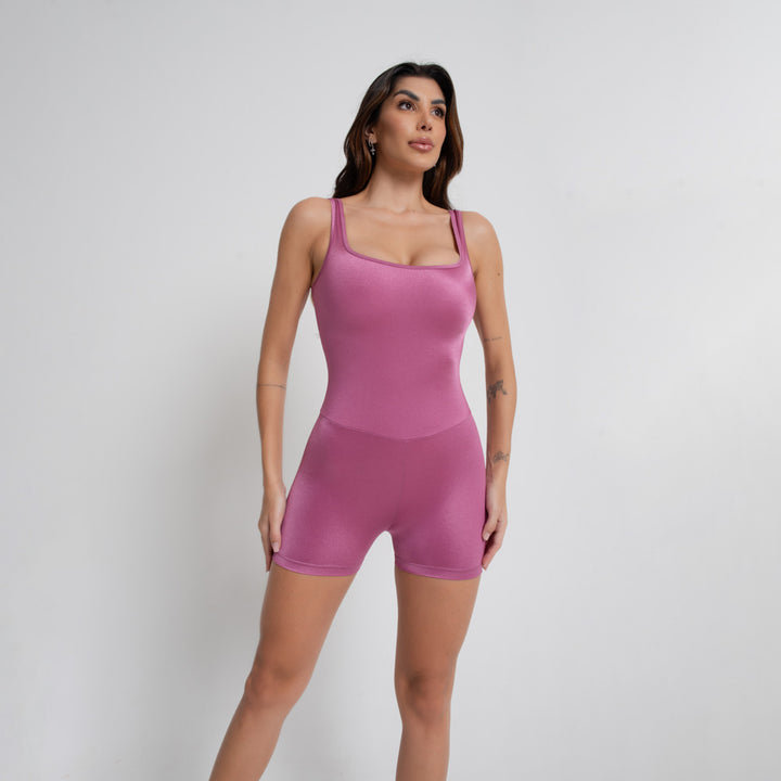 Macaquinho Fitness Energy Rosa com Decote Reto