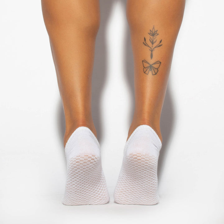 Meia Feminina Branca Invisível Franzida Nº 34 a 39 • Tecido: algodão • Lisa • Detalhes: sapatilha / invisível • Tamanho 34 a 39 • Composição: 75% algodão 15% poliamida 6% elastano 4% elastodieno A Meia Feminina Branca Invisível Franzida Nº 34 a 39 possui textura mais fina que permite maior respirabilidade, secagem rápida e conforto tornando-se a escolha perfeita para aumentar a performance. Modelo básico invisível franzido para melhor anatomia ao pé.