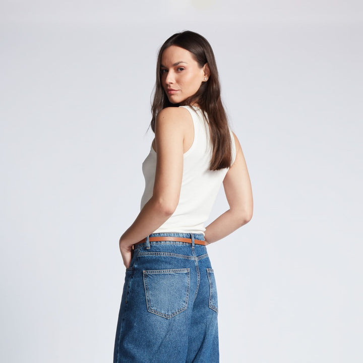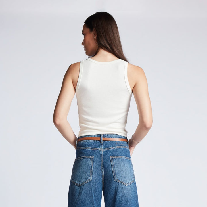 Essa regata apresenta um corte Slim básico, com acabamento em viés do próprio material. Feita de viscose de alta qualidade, uma fibra extraída de plantas, oferece um toque extremamente macio e fresco, além de elasticidade para maior conforto. O tecido canelado, com leve textura, proporciona um caimento perfeito e é super durável, tornando esta peça essencial para qualquer guarda-roupa.