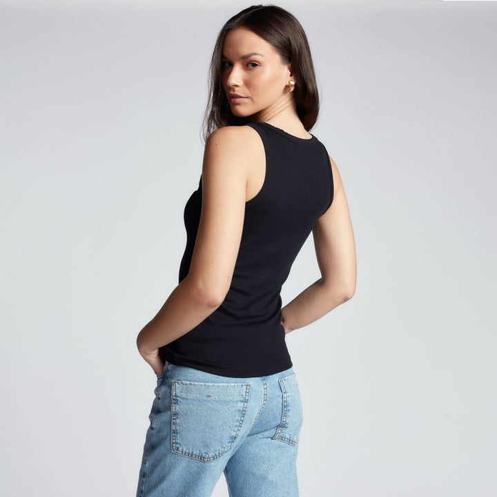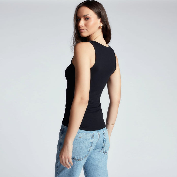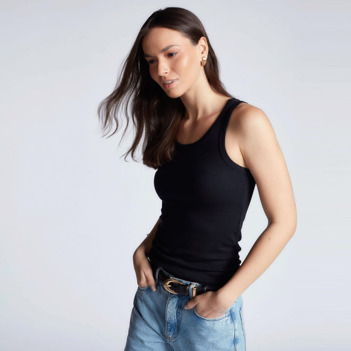 Essa regata apresenta um corte Slim básico, com acabamento em viés do próprio material. Feita de viscose de alta qualidade, uma fibra extraída de plantas, oferece um toque extremamente macio e fresco, além de elasticidade para maior conforto. O tecido canelado, com leve textura, proporciona um caimento perfeito e é super durável, tornando esta peça essencial para qualquer guarda-roupa.