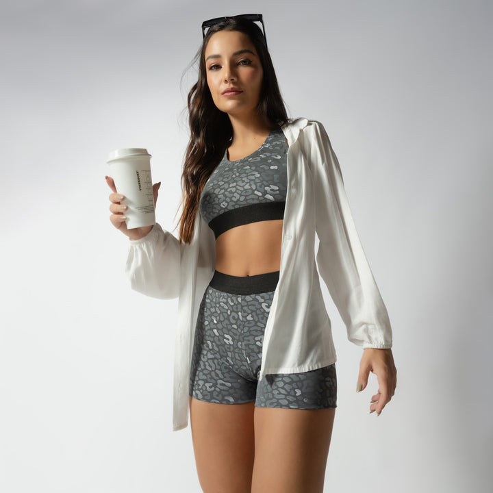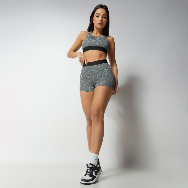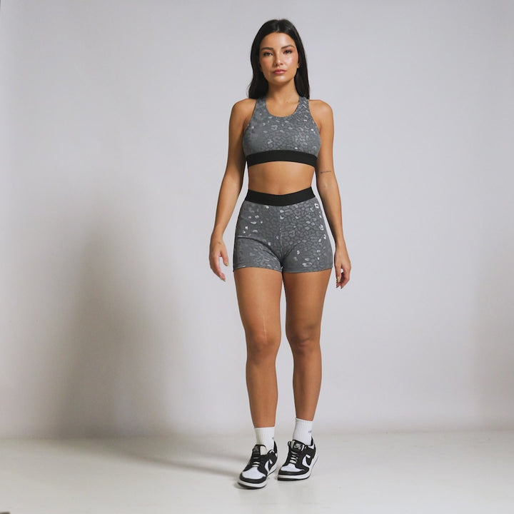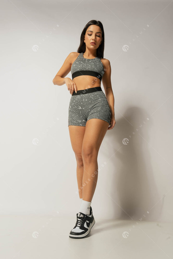 O Short Fitness Com Elástico é confeccionado com tecido emborrachado de alta qualidade, garantindo resistência e durabilidade para acompanhá-la em todas as suas conquistas. Com uma textura inspirada na elegância da onça, esse short proporciona um visual único e marcante, tornando-o o destaque na academia ou em qualquer lugar que você vá.