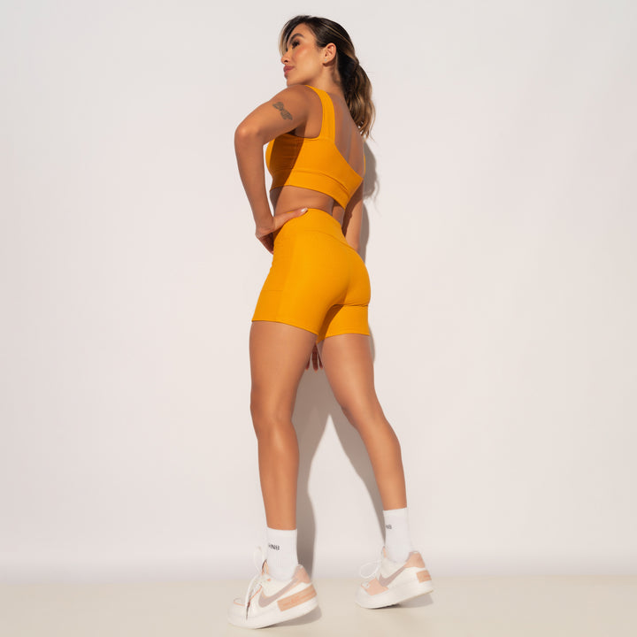 O Short Fitness Laranja com Bolsos e Recortes Laterais é a escolha perfeita para as suas atividades físicas. Fabricado com tecido de ótima qualidade de alta elasticidade e média compressão, sendo assim garante conforto e flexibilidade a cada movimento.