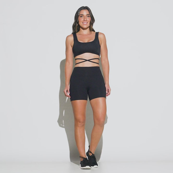 Se você adora um visual fashion e confortável durante os treinos, o Short Fitness Preto com Recorte e Cintura Alta é a escolha perfeita! Feito com um tecido de poliamida de alta qualidade, esse short vai te proporcionar flexibilidade e resistência durante as atividades físicas.