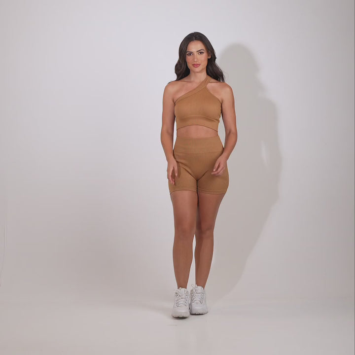 Feito com um tecido elástico e respirável, esse short acompanha seu ritmo, seja na academia, no treino ao ar livre ou no dia a dia. Com uma texturiza canelada e modelagem de cintura alta, essa legging sem costura proporciona sustentação e segurança sem apertar, valorizando a silhueta. Aposte no Short Fitness Sem Costura Caramelo para unir tecnologia e estilo em uma peça que valoriza seu corpo e seu desempenho!