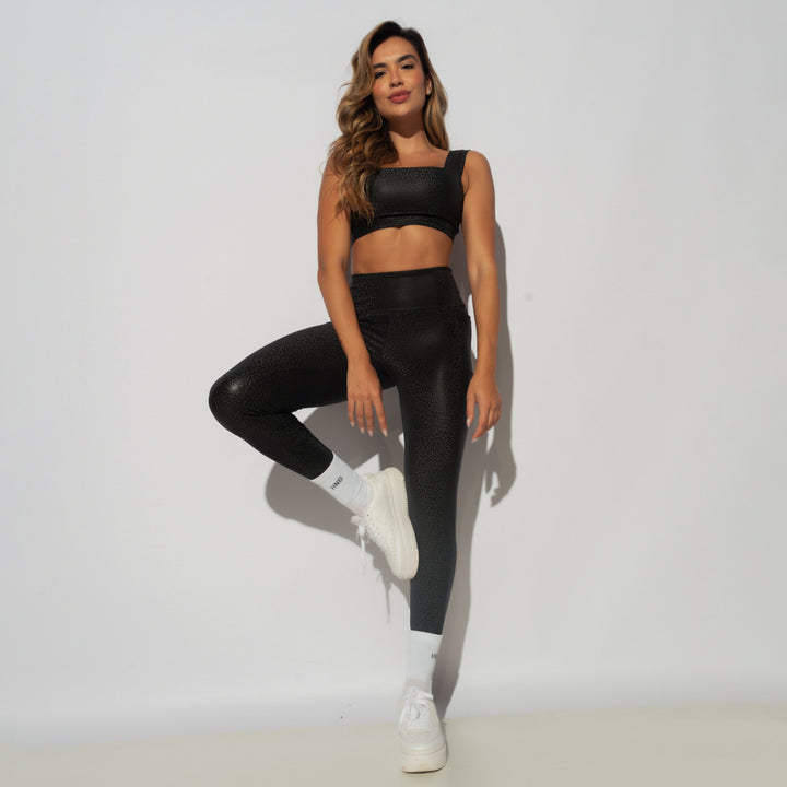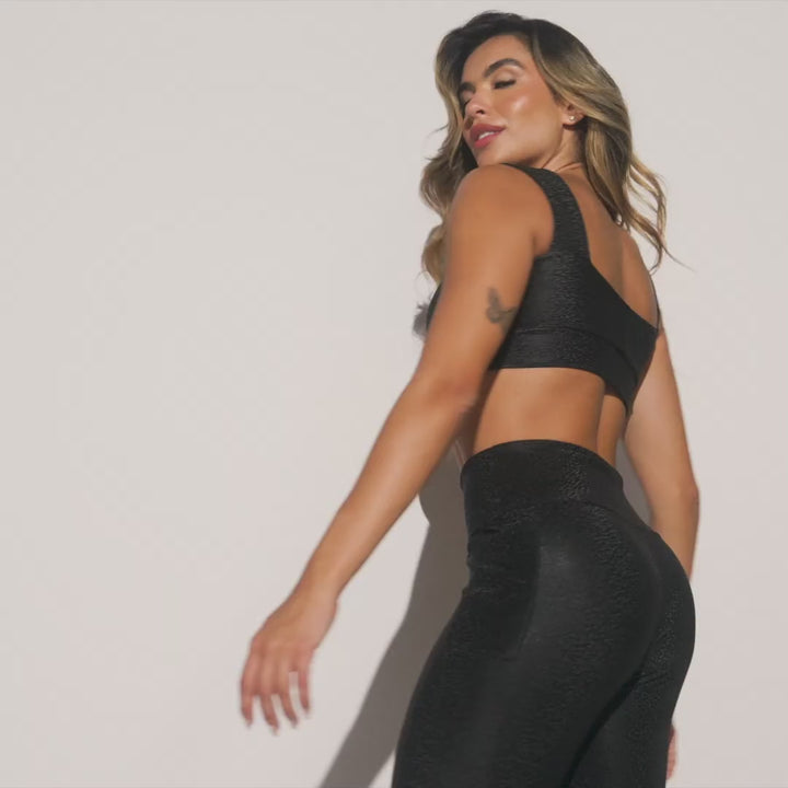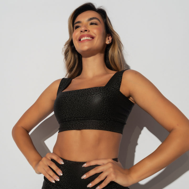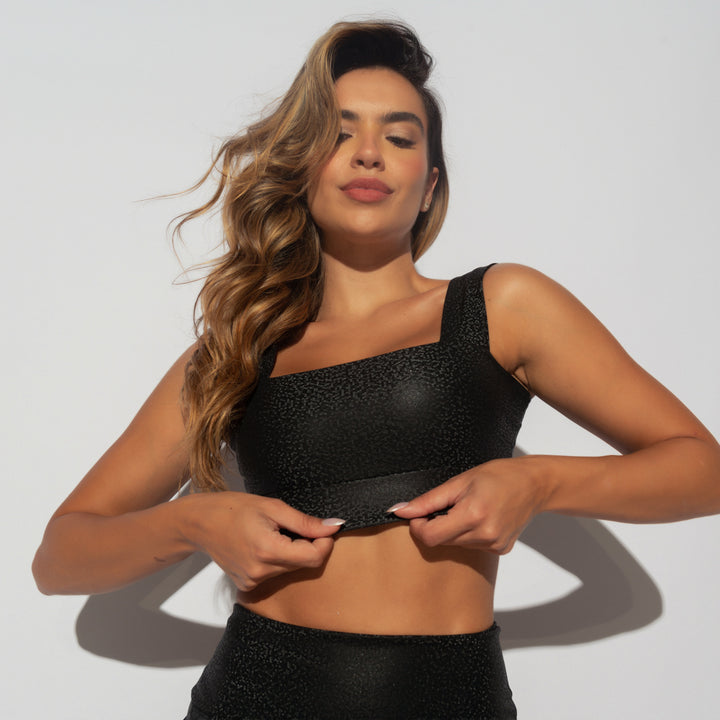 O tecido possui um toque emborrachado, proporcionando um visual moderno e uma sensação suave ao toque. Com uma estampa de efeito 3D sem alto relevo, esse top adiciona um toque único ao seu look fitness.<br>