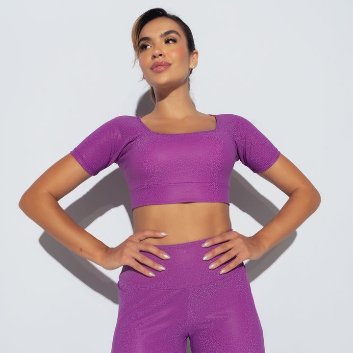Top Fitness Com Manga Skin Roxo .
