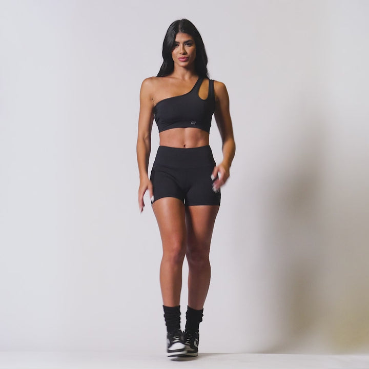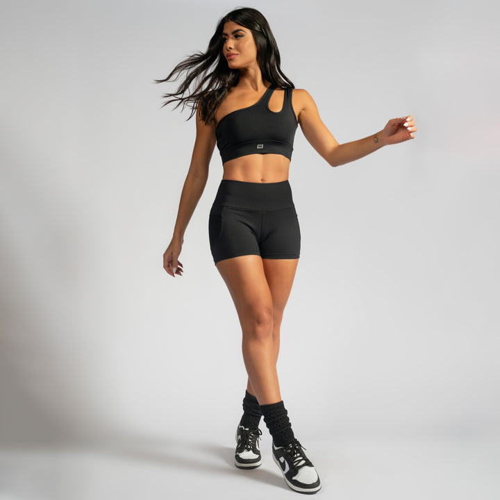 Com seu design moderno, este Top Academia Preto Assimétrico oferece uma aparência diferenciada. Essa peça é perfeita para adicionar um toque de estilo aos seus treinos. <br>